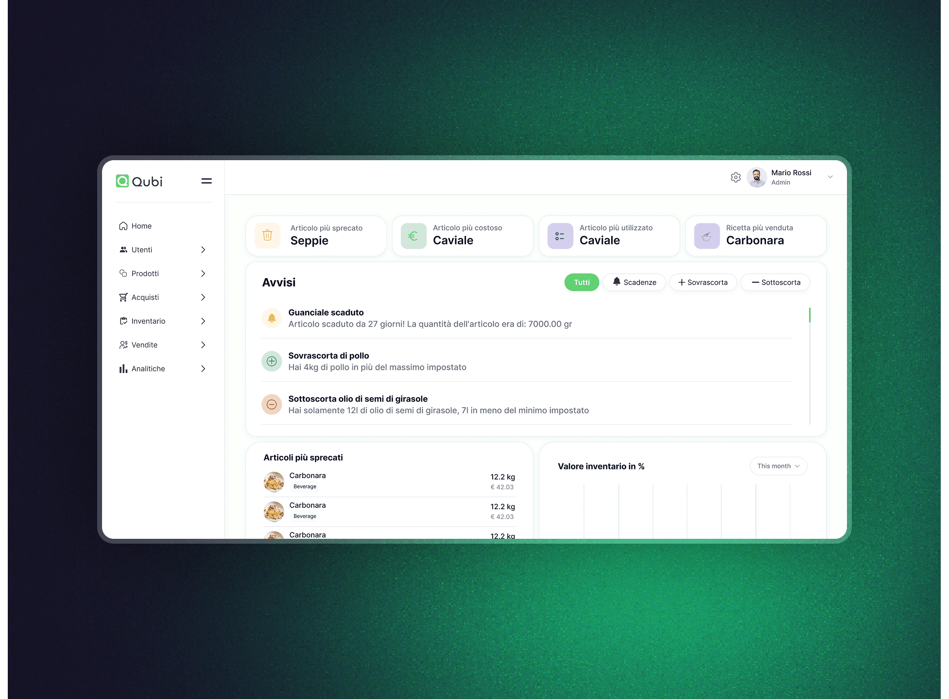 The restaurant industry increasingly requires advanced digital tools to manage inventory, control costs, and ensure compliance with food safety regulations like HACCP. Qubi was designed to respond to these needs by replacing an outdated PHP-based system with a smarter, more intuitive platform.